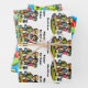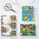 Tres hojas de juego de regalo con temas de golf en disco. Uno tiene tres niños pequeños tirando golfos de disco. La segunda tiene un patrón de golf en disco azul, verde y rojo y la tercera se puede añadir el nombre de su pequeño.