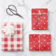 Hoja De Papel De Regalo Cumpleaños de lunares rayas cuadros rojos y crema