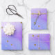Hojas de papel de regalo para cumpleaños de niñas con azul rosa púrpura y brillo dorado remolino. 3 por paquete.