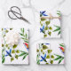 Hojas de papel de regalo de acuarela de pájaros y flores brillantes y coloridas