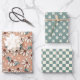 Encantador juego de hojas de papel envolvente con margaritas, cucharaditas y estampados retro en tablero de ajedrez en tonos tierra y pastel. Perfecto para cumpleaños, celebraciones de primavera y obsequios de cabaña. Una forma dulce y elegante de envolver los regalos con un toque lúdico.