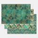 Hoja De Papel De Regalo Damasco de cosecha verde azulada y dorada