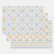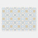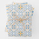 El papel de envoltura de coordenadas presenta damasco mediterráneo toscano azul y amarillo. Perfecto para cumpleaños, duchas, recién nacido, despuchado y manualidades.