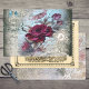 Hermosas flores de rosa rojas de época en la prensa escrita, con un broche de perlas falsas y un collar, una jaula de pájaro con arco verde azulado. Publicidad apotecaria en amarillo antiguo. Y por último, rosas rosas rosas y blancas en letras viejas y manchadas. Cada uno haría un excelente papel de desacoplamiento para sus necesidades de artesanía.