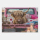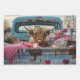 This 19x29 wrapping paper features three whimsical Highland cow designs, perfect for flat-surface decoupage. One shows a shaggy cow lounging in a pink pickup truck surrounded by heart pillows, candles, and cozy Valentine décor. Another captures a festive barnyard moment with romantic Western flair, while the third highlights rustic charm with playful animal expressions and seasonal accents. Ideal for journal covers, mixed media, furniture art, or holiday crafting, this trio blends love, humor, and farmhouse warmth into one versatile sheet.