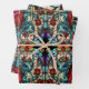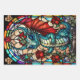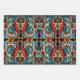 Este colorido envoltorio de regalo de vidrio falso presenta dragones verde azulados brillantes y rosas rojas. Cada hoja utiliza el mismo diseño en un tamaño y disposición diferentes para una variedad de configuraciones de envoltura de regalo.