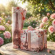 Transport your loved one to the City of Lights. This breathtaking wrapping paper captures the quintessential romantic moment: a view of the Eiffel Tower framed by soft, blooming pink roses and floating hearts. The dreamy rose-gold haze creates an atmosphere of intimacy and travel. It is the perfect wrapping for a romantic getaway reveal, jewelry, or a heartfelt love letter