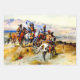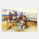 Charles (CM) Russell, el "vaquero artista", creó más de 2,000 pinturas de vaqueros, indios y paisajes ambientados en el oeste de Estados Unidos. Vivió y trabajó entre los vaqueros y la tribu hindú de la sangre en sus años pequeños. Esta imagen se llama "El advenimiento del hombre blanco" y representa a una banda de indios mirando un tren vagón desde la cima de una colina.