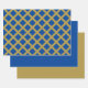 Clásicas hojas de papel de envolvimiento con motivos dorados y celosías. El fondo azul puede cambiarse a tu color favorito. Por https://www.zazzle.com/store/celestesheffey
