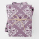 Papel de envolvimiento con temática mauve y parisina negra en tres estilos diferentes, incluyendo damasco floral ornamentado, fleur-de-lis y patrones rosas de entramado.