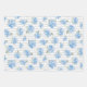 Hoja De Papel De Regalo Elegant Blue Hydrangea Pattern Gray Stripe