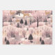 Three elegant pink holiday wrapping paper sheets featuring a delicately illustrated pink village dotted with roaming deer.