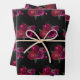 Papel envuelto con una hermosa imagen de un ramo de flores magenta y rosa. Fondo negro.