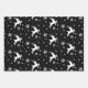 Elegantes hojas de papel para envolver renos blancos negros y árboles de Navidad
