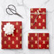 Elegante Relieve metalizado rojo oscuro y dorado lindo galletas de jengibre patrón regalo festivo Envolver hojas de papel. Galletas de pan de jengibre de oro, fondo rojo oscuro. Ideal para los Navidades y para la temporada de vacaciones.