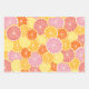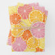 Frutas cítricas caprichosas en tonos rosados, coral, naranja y pomelo rojo rubí. Las rodajas de cítricos dibujadas a mano están en un patrón divertido para una adición jugosa a la decoración de una colorida fiesta de boda.