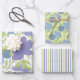 Añada un toque único a sus regalos con este elegante envoltorio de regalo con flores, fresas y rayas en una paleta de colores coordinados de cal, azul y violeta.