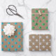 Una hoja de trío de papel envuelto para la temporada navideña de los Navidades con estrellas azul turquesa, rojo y plateado en un rústico fondo de papel kraft. Ideal para cualquier ocasión y hace un regalo impresionante.