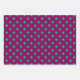 Una hoja de trío de papel de envolvimiento festivo para la temporada navideña de los Navidades con estrellas azul turquesa, rojo y plateado sobre un fondo violeta y rojo intenso. Ideal para cualquier ocasión y hace un regalo impresionante.