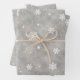 Estas sábanas de papel de envoltura festiva presentan un lindo patrón de Navidades con estrellas blancas y copos de nieve sobre un fondo falso purpurina plateado. Ideal para Navidades y regalo de cumpleaños de invierno.