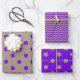 Hoja De Papel De Regalo Faux Kraft Paper w/ Purple Multi-Patterns