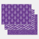 Feliz Navidad, árboles y polka ponen hojas de papel violetas para las vacaciones. La primera hoja presenta árboles de invierno blancos sobre fondo morado. El segundo muestra el texto: "Feliz Navidad" en tipografía audaz y el tercero muestra los puntos de polka-nieve.