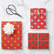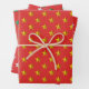 Una hoja de trío de papel envuelto festivo para la temporada de vacaciones de los Navidades con estrellas de plata verde y oro en un fondo rojo. Ideal para cualquier ocasión y hace un regalo impresionante.