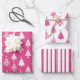 Hoja De Papel De Regalo Festive Pink and White Christmas Tree Pattern