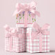 Eleva el regalo con este conjunto de papel de regalo coordinado que presenta una encantadora mezcla de flores en forma de corazón, rayas y bordes escalonados de moda mezclados con patrones clásicos de cuadros y gingham en hermosos tonos de rosa, púrpura y blanco. Estos sencillos patrones para combinar hacen que envolver regalos sea fácil. Perfecto para cualquier ocasión, desde el Día de San Valentín y el Día de la Madre hasta cumpleaños y baby showers, estos papeles de regalo versátiles infundirán estilo a tus regalos. Modifica el texto para que se ajuste a la ocasión.