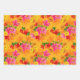 Los ramos florales sobre un fondo naranja se presentan en estas hojas de papel de regalo, divertidas para cualquier ocasión.