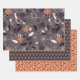 Hermoso papel de envoltura gris naranja con flores de Navidad, toque forestal, estrellas, bayas y adornos. ¡Desearía que encontraras tu alegría en los Navidades dando!