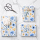 Papel de regalo de flores silvestres boho azul amarillo. Tres hojas por paquete. Ideal para cumpleaños, baby showers, fiestas de novia y bodas.