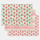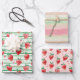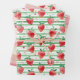Un conjunto de fresas y rayas que envuelven hojas de papel.