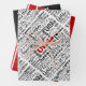 Uffda es una expresión escandinava de Noruega. Por lo general significa que algo es abrumador, bueno o no tan bueno, no importa. Si usted es de los Estados del Alto Medio Oeste, como Minnesota, seguramente ha escuchado esta expresión. El diseño principal es un collage de la palabra Uffda usando varias fuentes en texto negro sobre blanco con un texto rojo más grande en el centro. Los otros dos periódicos son una franja roja y blanca coordinada y negro con puntos de polka blanca.