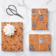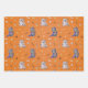 Papel de regalo caprichoso de Halloween con gatos divertidos disfrazados, junto con murciélagos, calaveras, arañas y huesos de caramelo dispersos sobre un fondo naranja festivo. Un diseño juguetón y ligero perfecto para envolver favores de fiesta o regalos de cumpleaños de octubre. Ideal para niños, amantes de las mascotas y cualquiera que disfrute de un toque adorable en Halloween.