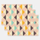 Geometric pattern with overlapping diamonds and triangles in orange, teal, cream, brown, and pink. The design is symmetrical, creating a vibrant, playful feel.