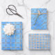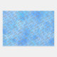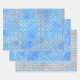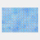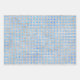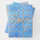 Regalos y suministros de fiesta de temática geométrica y neutra en función del género. Una variedad de formas cuadradas geométricas sobre un hermoso fondo azul moteado para cada hoja de envolver regalo en el conjunto de 3. El fondo azul se puede reemplazar con un fondo de su elección para personalizar y mostrar su estilo. Hojas de papel de envolvimiento geométrico azul y gris