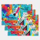 Hojas modernas de envoltura de regalo geométricas coloridas, alegres y divertidas!