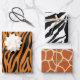 Bring a wild and stylish touch to your gifts with this set of 3 animal print wrapping paper sheets! Featuring giraffe spots, zebra stripes, and tiger stripes in bold, eye-catching designs, these sheets are perfect for safari, jungle, or animal-themed celebrations.