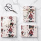 Wrapping paper sheets with an image of a young girl holding a butterfly wand. An adorable unique retro style doll with rosy cheeks. Butterflies flying all around. Sweet and cute.