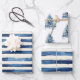 Hoja De Papel De Regalo Gold Blue Stripes Christmas Tree