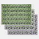 This set of wrapping paper sheets are light grey, green and purple with rows of a cute Goth girl with spiderweb and purple moon tattoos wearing a bright green hat in a spooky frame of black barbed branches.