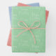 Un trío de hojas de papel para envolver feliz cumpleaños, que incluyen una hoja de papel para envolver feliz cumpleaños, una hoja de papel para envolver coral y una hoja de papel para envolver feliz cumpleaños. Estos suaves colores harán una gran adición a cualquier regalo de cumpleaños.