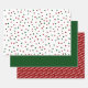 Estas sábanas de papel envolvente tienen una hoja verde con puntos verdes y rojos, una hoja sólida de color rojo y otra verde con el texto "Feliz Navidad". El texto se puede personalizar.