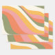 Groovy líneas de oleada retro en hojas de papel de envolvimiento de color amarillo verde y rosa