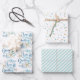 Navidades costeros SEAsons Saludos Hojas de Papel Acondicionante Script. Envuelve los regalos de vacaciones de sus Navidades con un ambiente costero o tropical con este conjunto de 3 sábanas de envoltura coordinadas, incluyendo una con el saludo de SEAsons Greetings en un diseño decorativo de escritura tipográfica con estrellas, una con puntos turquesas y dorados y una con rayas turquesas y blancas. ASISTENCIA: Comuníquese con el diseñador a través de Zazzle Chat o makeitaboutyoustore@gmail.com si desea modificar este diseño o en otro producto.
