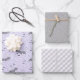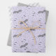 Estas hojas de papel de envolvimiento para niños de Halloween incluyen 3 hojas individuales con diseños hechos a mano por Nathalie Portet. La hoja 1 presenta bates bonitos, estrellas, lunas, telarañas y la frase "Spooky Cute" sobre un fondo púrpura pastel. La hoja 2 muestra un patrón de estrellas y lunas simples en gris claro. La hoja 3 completa el conjunto con un diseño de gingham púrpura y gris. Perfecto para duchas de bebé, cumpleaños de octubre o regalos de Halloween.