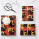Halloween envuelve sábanas de papel, será perfecto en tu regalo de noche de Halloween! Bates negros, bruja volando sobre palo de herradura, ¡y un fantasma en una casa embrujada sobre el fondo naranja!