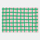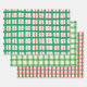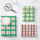 A set of three bright and modern hand drawn Christmas geometric patterns, featuring a sheet of green grid wrapping paper, and two different red, pink, and green plaids.