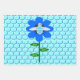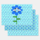 Este impresionante paquete de papel envolvente presenta una imagen gráfica de un lindo abejorro azul con rayas azules brillantes, ojos negros, antenas azules y piernas negras. Tiene alas azul y blanco bonito. La abeja está sentada en medio de un girasol azul bonito. La flor tiene un tallo verde y tres hojas. El mensaje "Bee Day boy" aparece esparcido por las tres hojas. El fondo está compuesto por un patrón de abeja azul pálido.